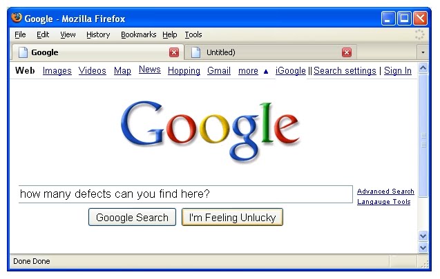 The image is from Google Homepage (Long time ago). The current actual Google Homepage looks different from the image but the defects in the image are still valid and timeless. The image was edited using GIMP, and HTML using Notepad++.